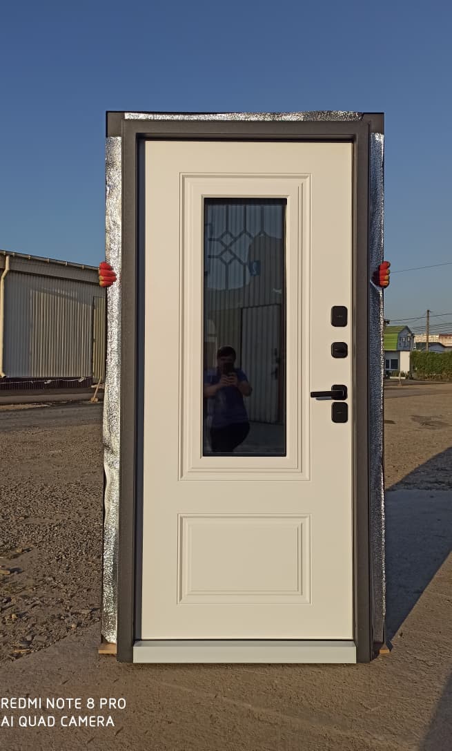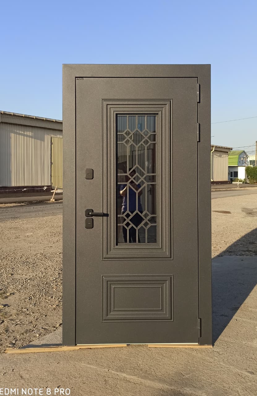 • Отделка снаружи: покрытие антикоррозийное + уличный муар серый с блестками с наружной и внутренней стороны. стеклопакет зеркальный (рефлектив серебро), внутри стеклопакета декоративный элемент из листа металла 3мм, покрытие муар серый с блестками. Давление на полотне. Когда применяется давление на полотне для создания объемных элементов вместо сварки , это минимизирует риски появления ржавчины, так как толщина порошковой краски распределяется равномерно и отсутствуют швы на металле. Это особенно важно при высокой влажности как на побережье.